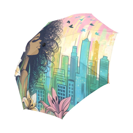 .Urban Blossoms: Vibrant Cityscapes and Floral Dreams – Collection - Auto-Foldable Umbrella (Model U04) - #2015