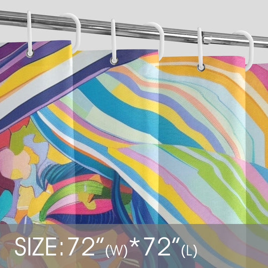 Shower Curtain 72" x 72" - Black Girl Art - Velvet's View - Sunflower Dreams - A Vibrant Digital Art Collection 6015
