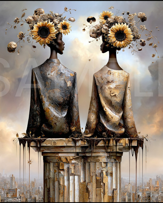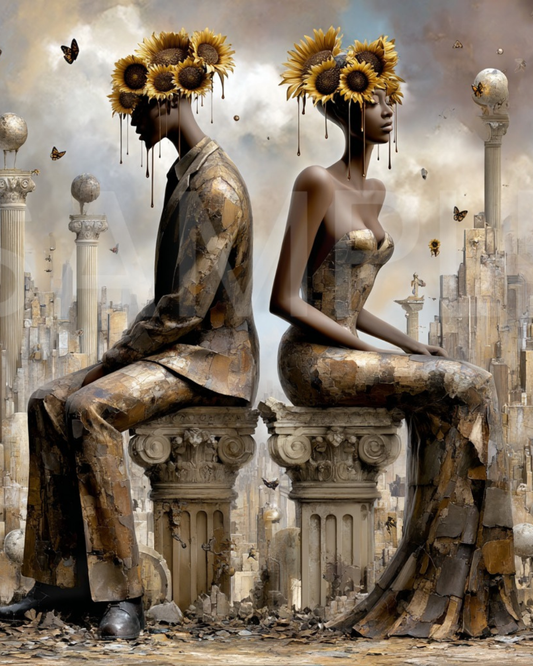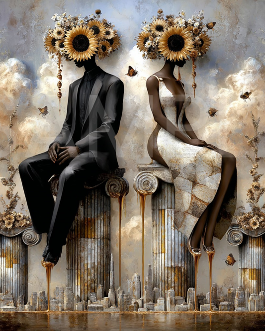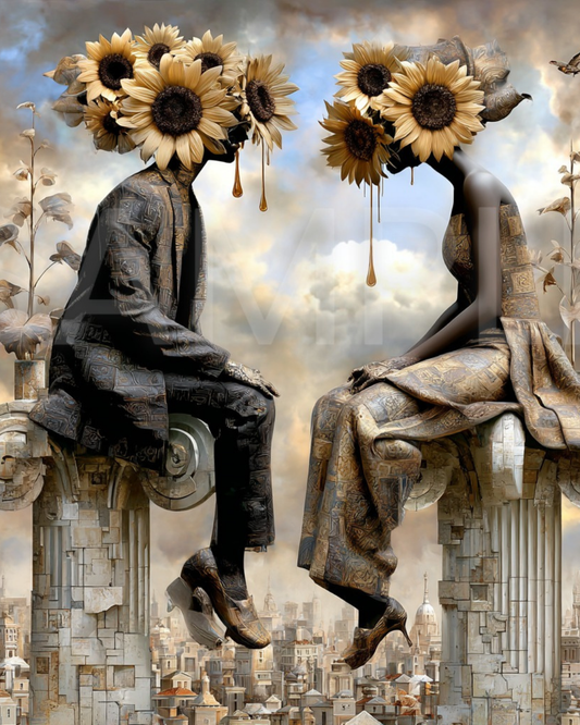 🌻Sunflower Thrones: Afro-Surreal Love & Royalty Digital Art Collection – Velvet’s View Exclusive - 741J30
