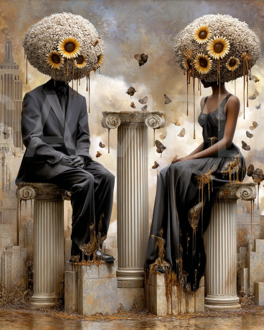 🌻Sunflower Thrones: Afro-Surreal Love & Royalty Digital Art Collection – Velvet’s View Exclusive - 741J31