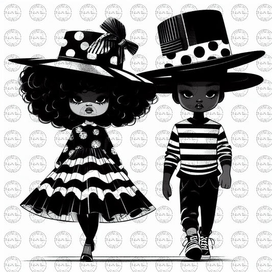 Black Girl Art - Kids Digital Art - Velvet's View - Kool Aid Cuties Collection: A Monochrome Tapestry of Childhood Joys 410