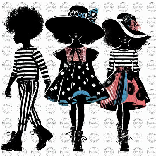 Black Girl Art - Kids Digital Art - Velvet's View - Kool Aid Cuties Collection: A Monochrome Tapestry of Childhood Joys 411