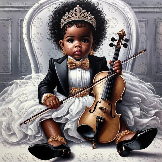 Black Girl Art - Kids Digital Art - Velvet's View - Harmony in Innocence: Baby Musician 768