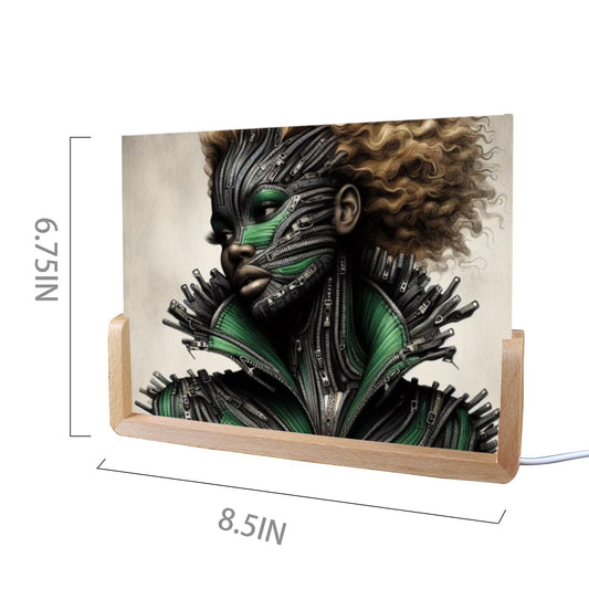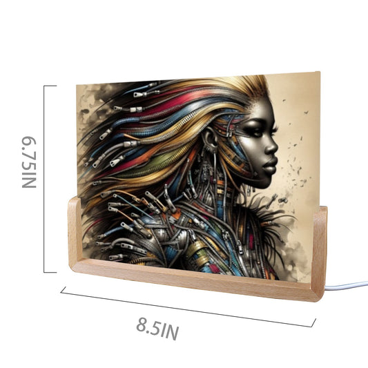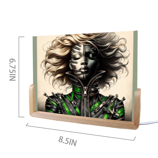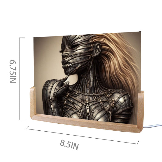 Acrylic Photo Night Light - Velvet's View - Mechanical Muse - The Fusion of Fashion and Futurism Collection - 8"x6"(U-Shaped Beech Base)