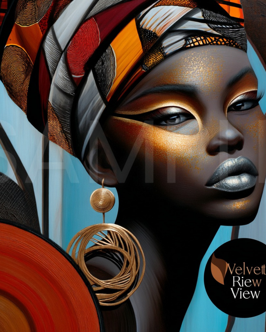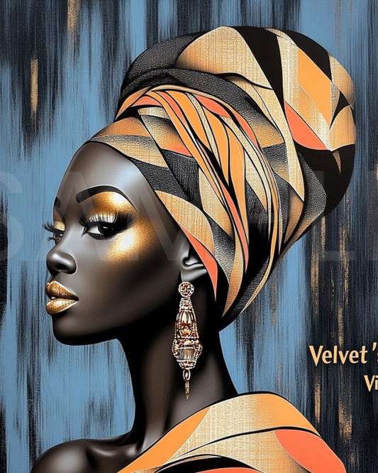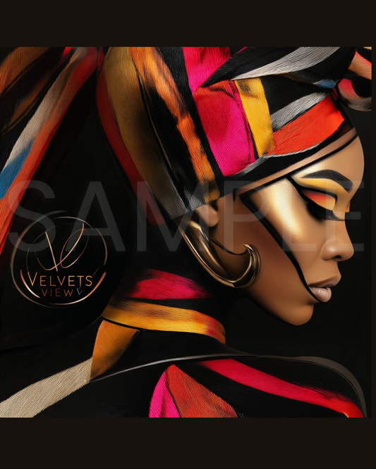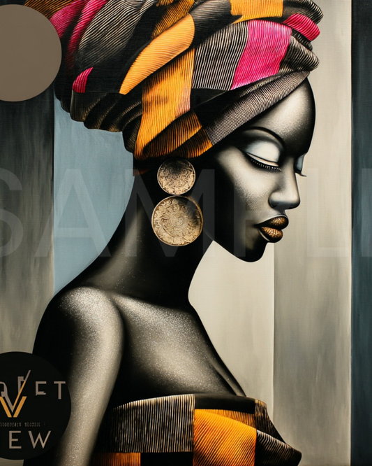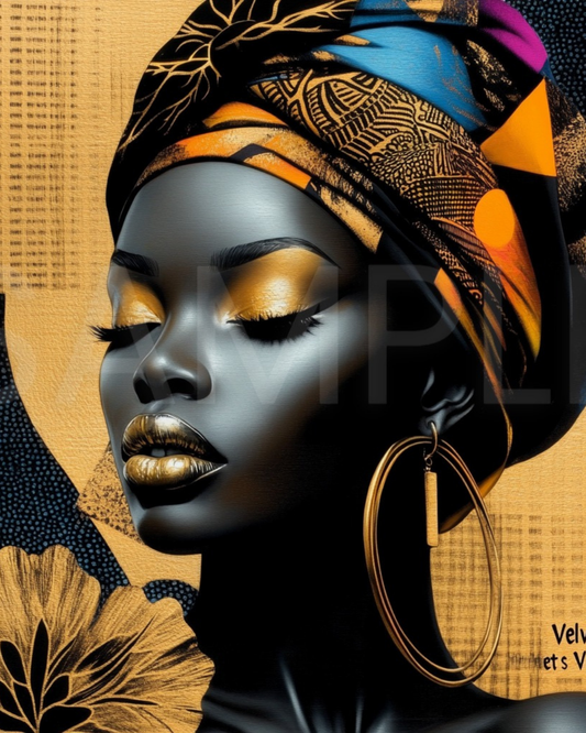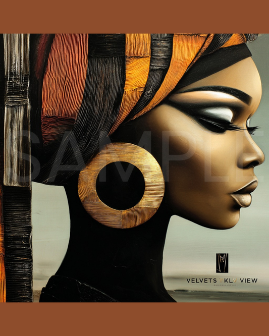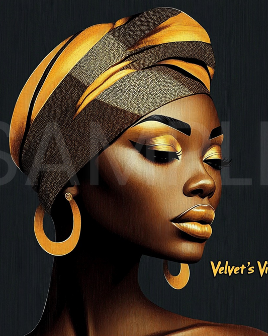 Abstract Silence: Golden Harmony in Profile – Afro-Minimalist Digital Art Print by Velvet’s View - 2115o265