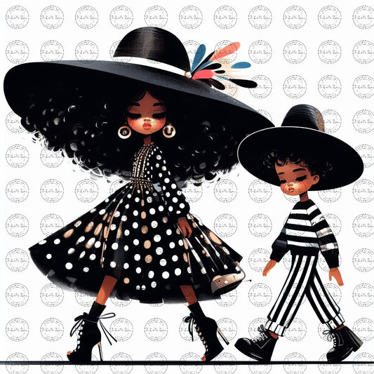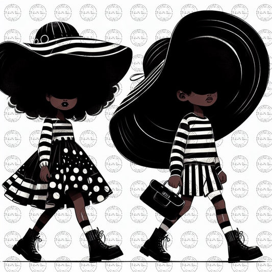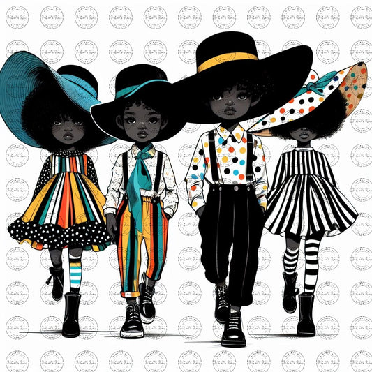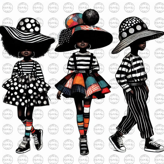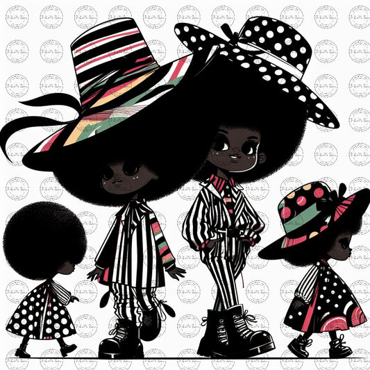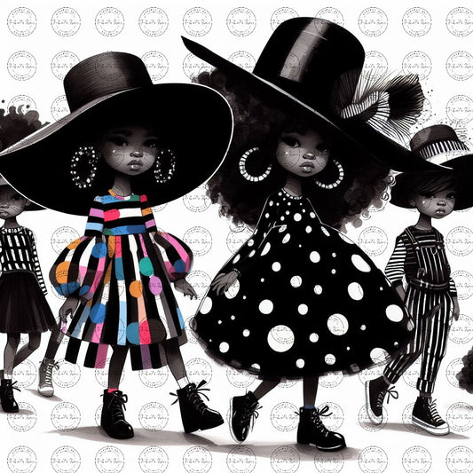 Black Girl Art - Kids Digital Art - Velvet's View - Kool Aid Cuties Collection: A Monochrome Tapestry of Childhood Joys 420