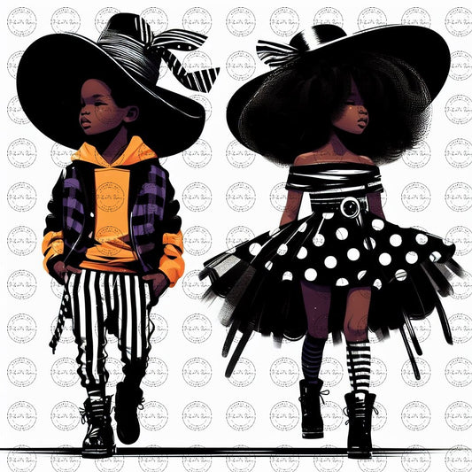 Black Girl Art - Kids Digital Art - Velvet's View - Kool Aid Cuties Collection: A Monochrome Tapestry of Childhood Joys 415