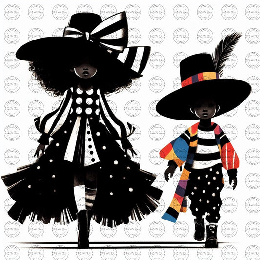 Black Girl Art - Kids Digital Art - Velvet's View - Kool Aid Cuties Collection: A Monochrome Tapestry of Childhood Joys 423