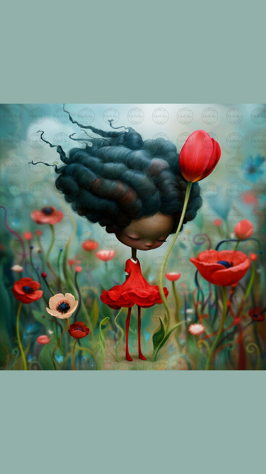 Black Girl Art - Kids Digital Art - Velvet's View - Tressa and Her Tulips 1024