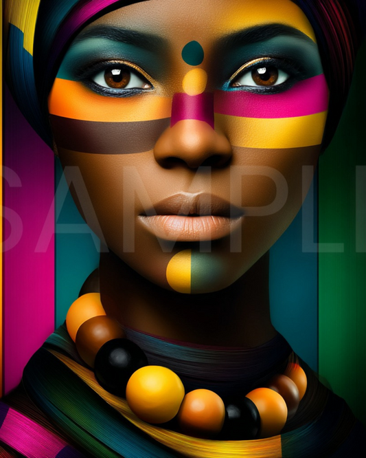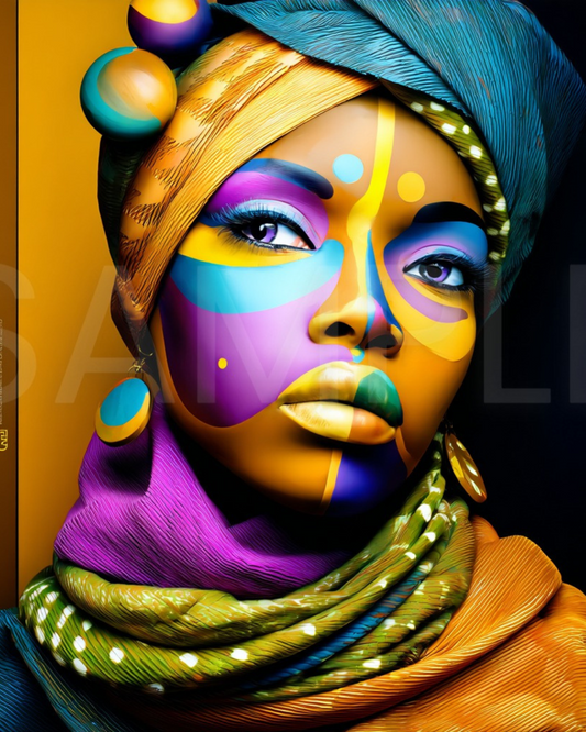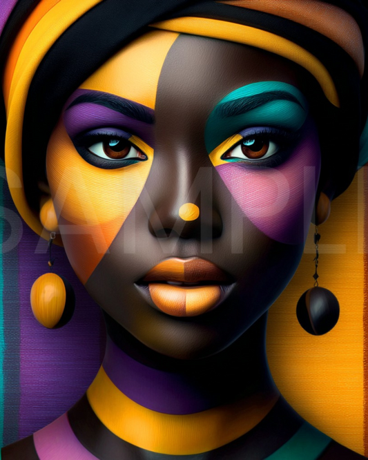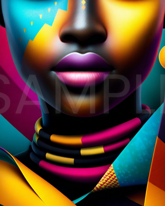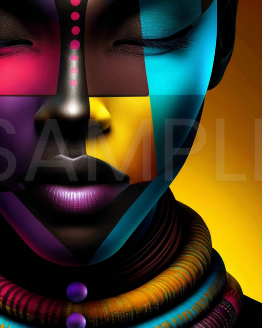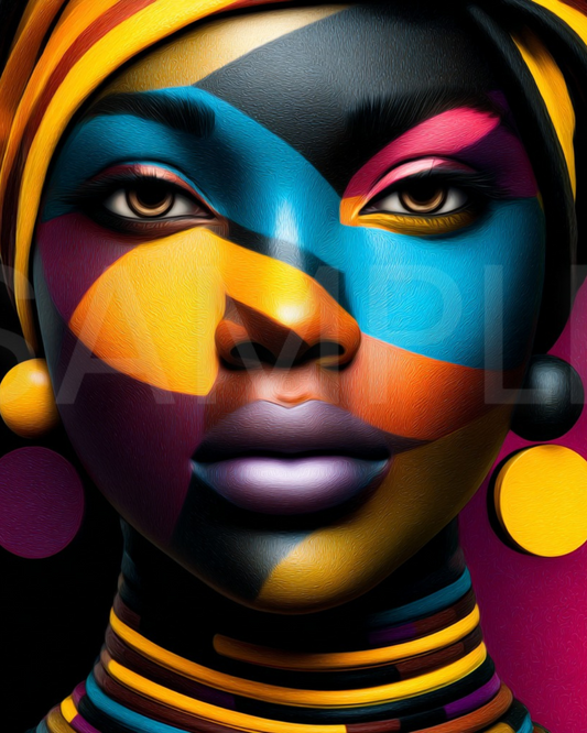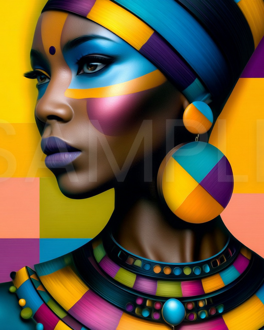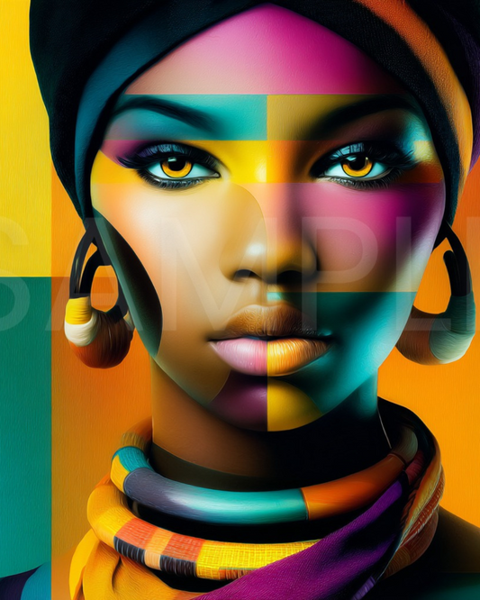 Afro Modern Majesty: Bold Digital Portraits of African Women in Geometric Color Patterns – Velvet’s View Exclusive - hfb852314H
