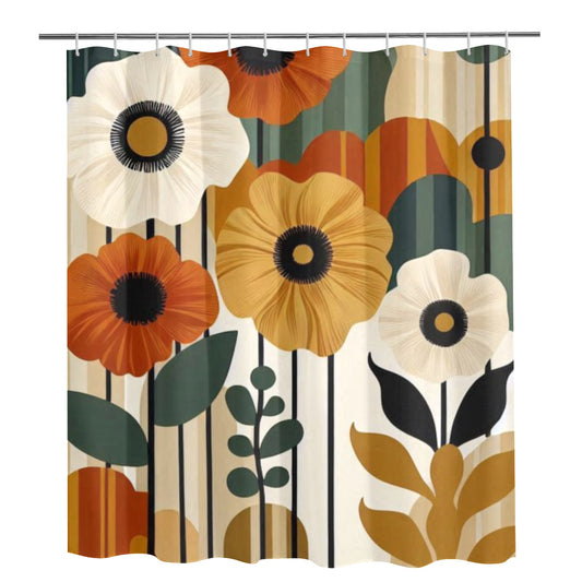 Retro Floral Bathroom Decor Set | Boho Abstract Shower Curtain, Towels & Wall Art | Mid Century Modern Bath Mat | Earth Tone Bathroom Collection - Shower Curtain 72"x84"