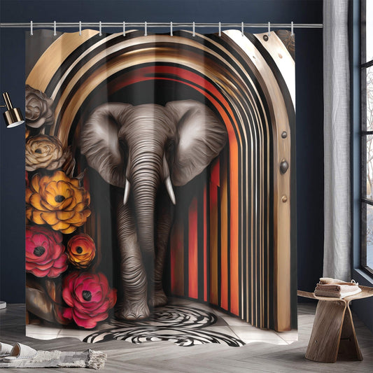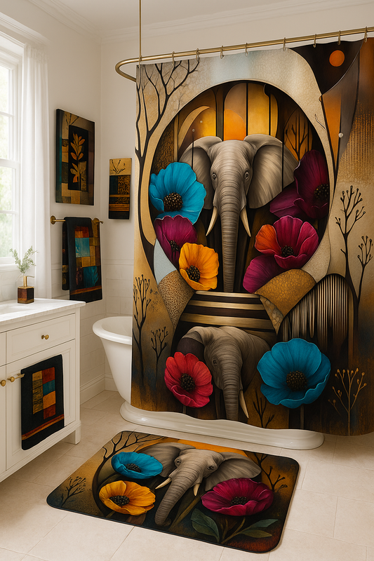 Elephant Art Shower Curtain & Bathroom Decor Set – Bold African Inspired Wildlife, Floral Jungle Theme, Elegant Boho Bathroom Accessories - Shower Curtain 72"x84" - 1474441HJ