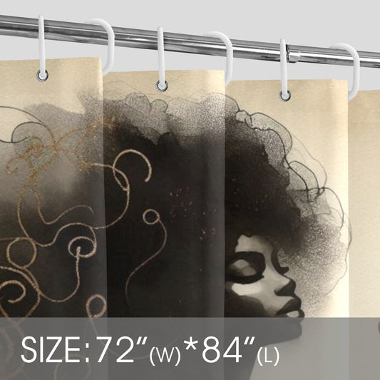 Afro Watercolor Shower Curtain Collection – Black Woman Silhouette Art for Bathroom Décor - 0734296