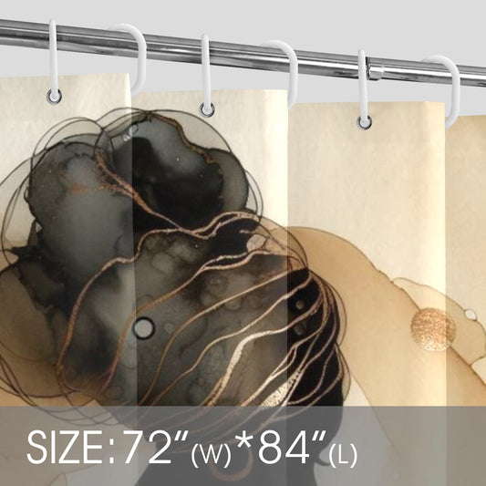 Golden Grace: Afro Silhouette Shower Curtain Collection – Luxury Black Woman Art for Modern Bathrooms - 26234410