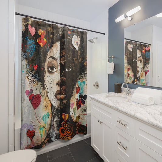Shower Curtain - Black Girl Art - Velvet's View - Heartfelt Reflections Collection -- #2018
