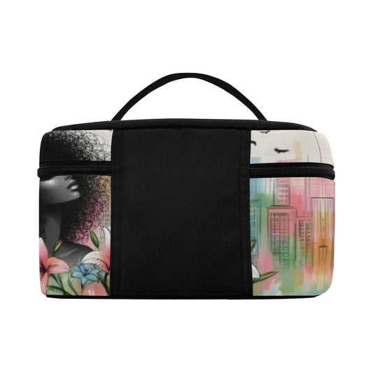 Cosmetic Bag/Large - Velvet's View - Urban Blossoms - Vibrant Cityscapes and Floral Dreams Collection - (Model 1658)