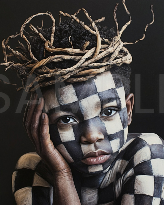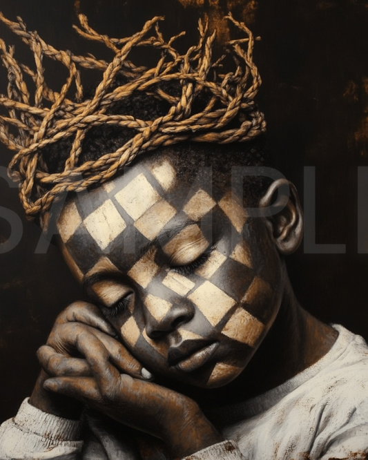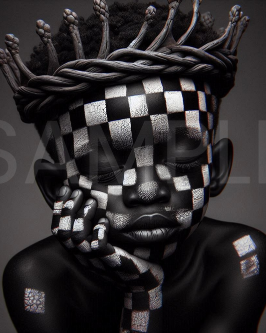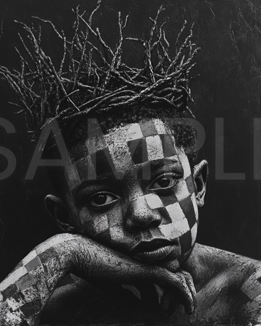 Crowned in Innocence: Afro Surreal Wooden-Inspired Kids Portraits – Velvet’s View Exclusive Digital Art Collection - 2589N6