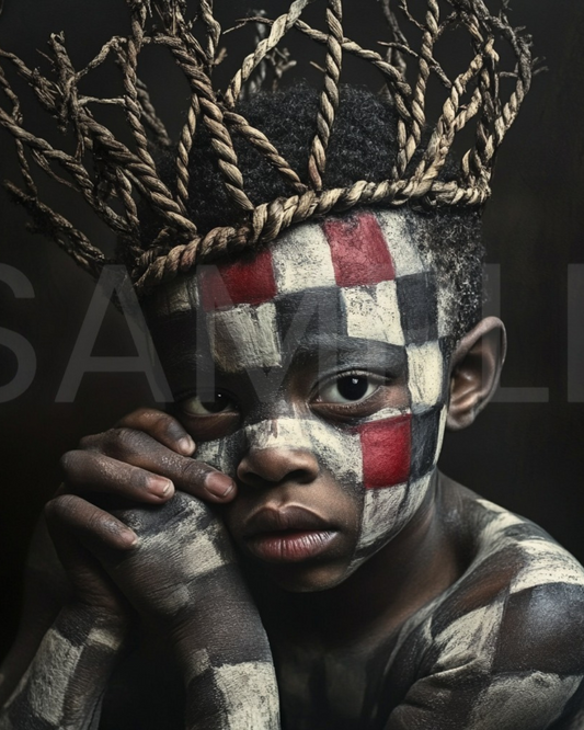 Crowned in Innocence: Afro Surreal Wooden-Inspired Kids Portraits – Velvet’s View Exclusive Digital Art Collection - 2589N