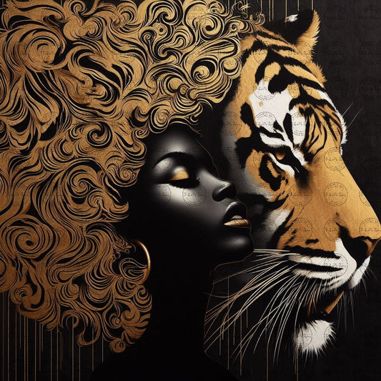 Digital Art - Ethereal Unity: The Afro Queen and Her Feline Sovereign - #2021