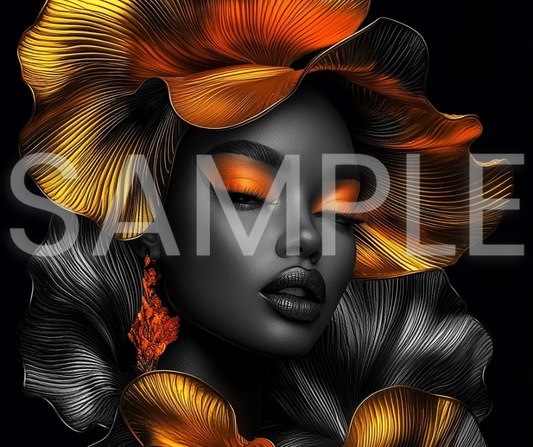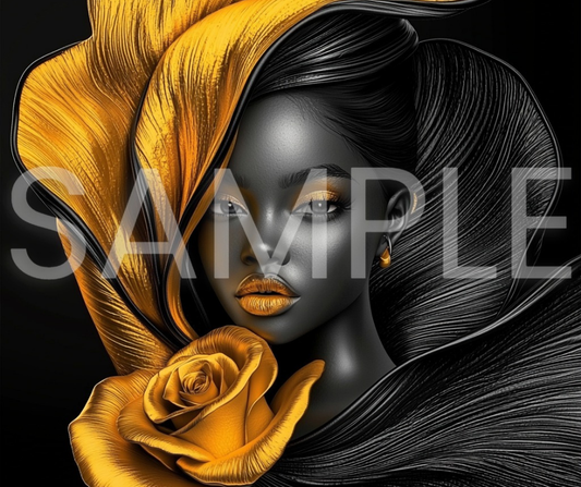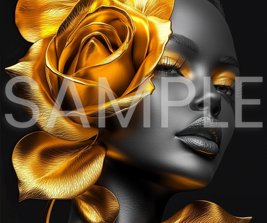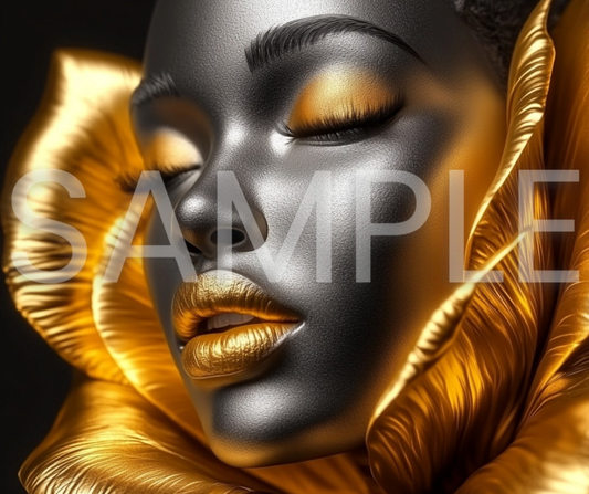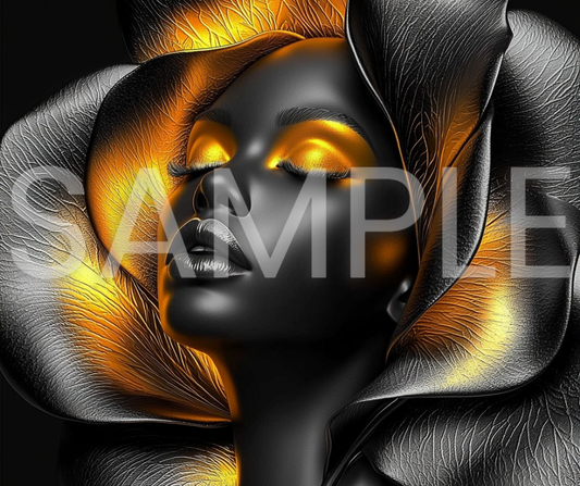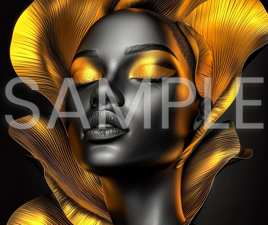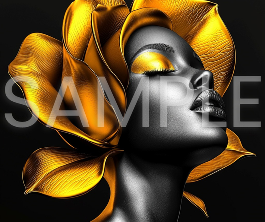 Golden Bloom Series: Surreal Portraits of Radiance – Digital Art Print - G265008