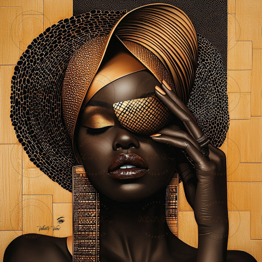 Black Girl Art - Velvets View - Golden Essence: A Celebration of Beauty and Power - #5631476