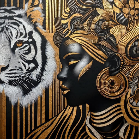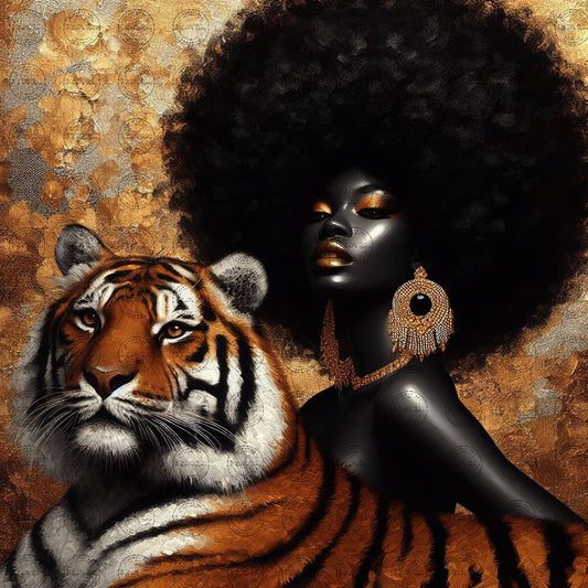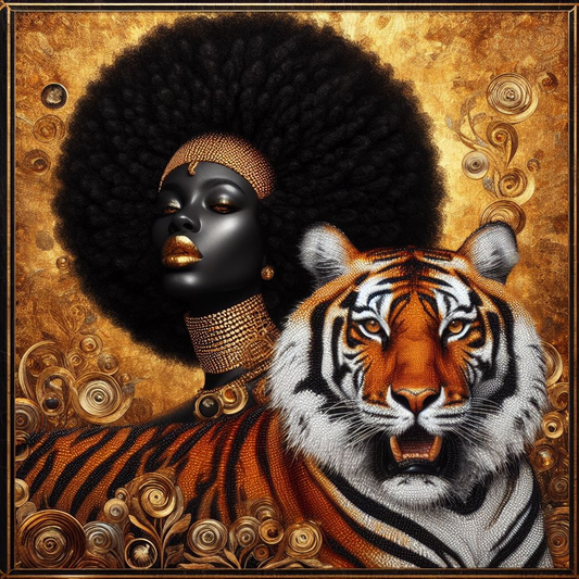 Digital Art - Ethereal Unity: The Afro Queen and Her Feline Sovereign - #2020