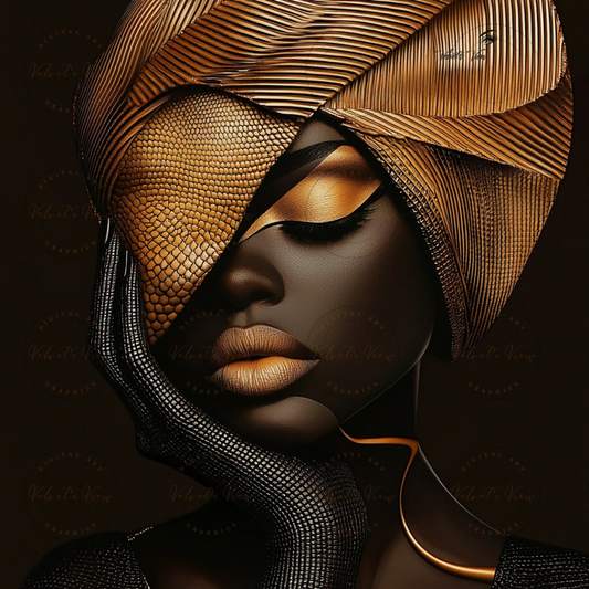 Black Girl Art - Velvets View - Golden Essence: A Celebration of Beauty and Power - #5631475