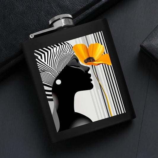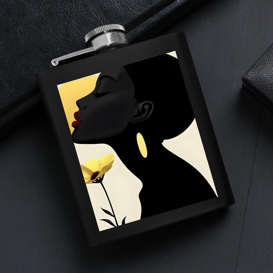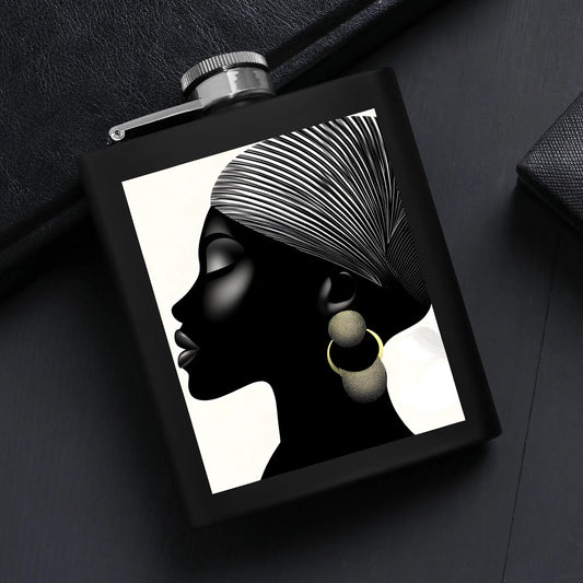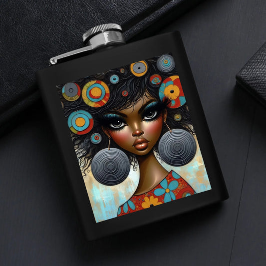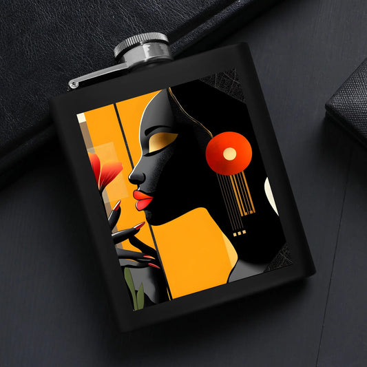 Hip Flask Set 7oz Black Stainless Steel with A Gift Box - Velvet's View - Bold & Beautiful - Afrocentric Digital Art Collection