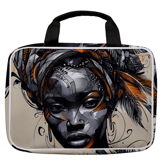 AfroFuturistic Elegance Collection: Travel Toiletry Bag With Hanging Hook - #2012