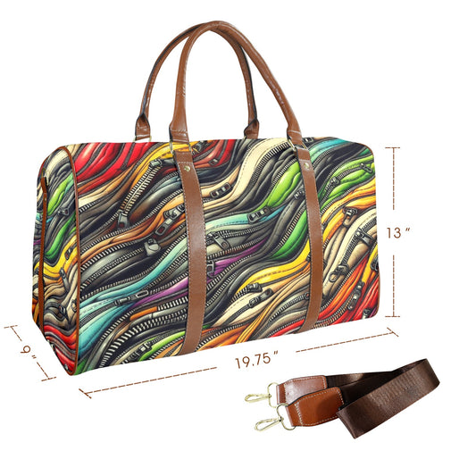 Large Capacity Travel Bag - Large - Velvet's View - Zipper Symphony Collection - (Brown Long Patch) (1736)