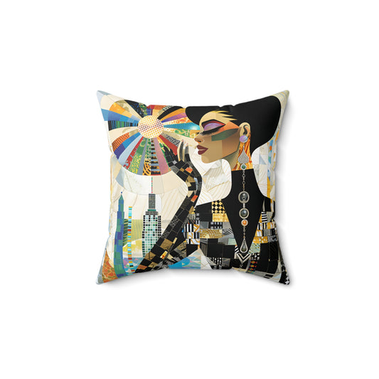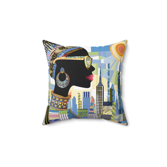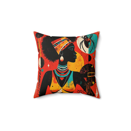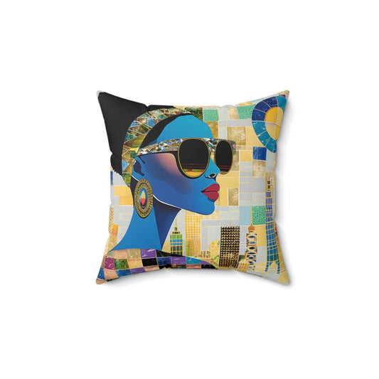 Spun Polyester Square Pillow - Black Girl Art - Velvet's View - Vibrant Visions - The Bohemian Collection