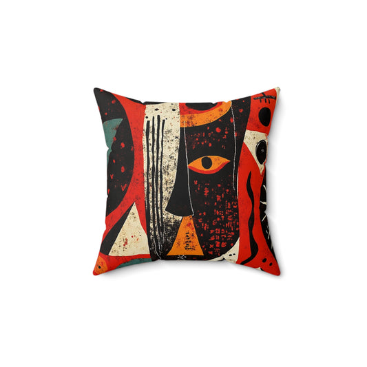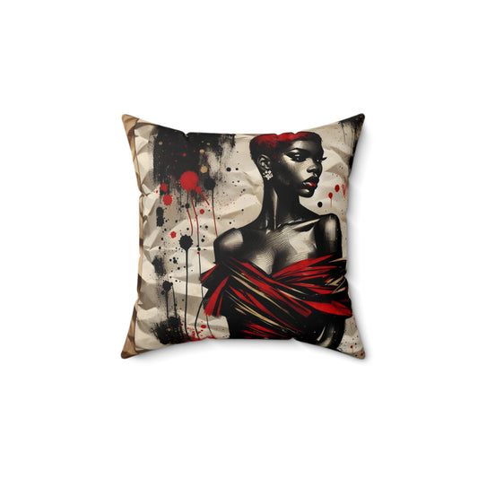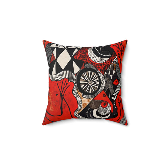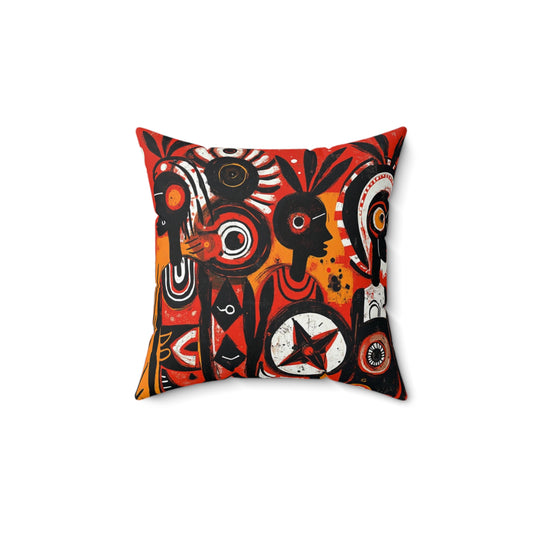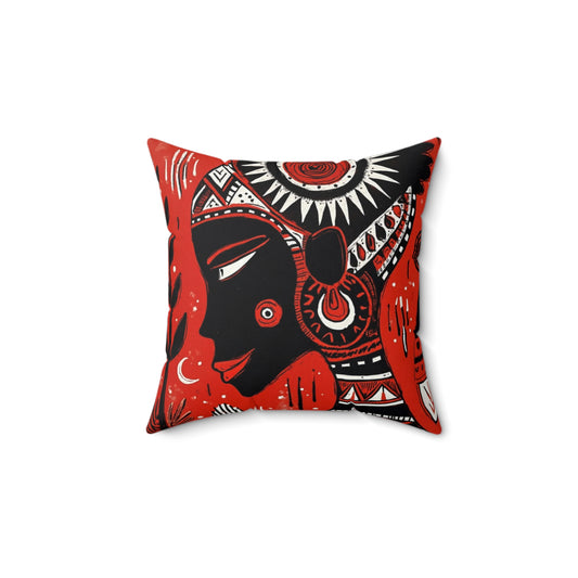 Spun Polyester Square Pillow - Black Girl Art - Velvet's View - Tribal Harmony - Red and Black Tribal Patterns –
