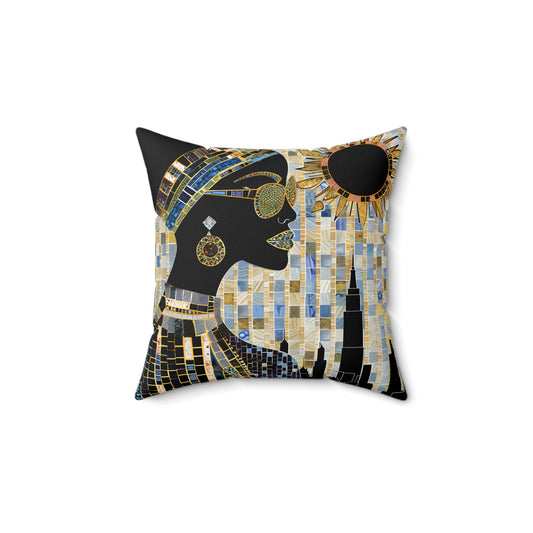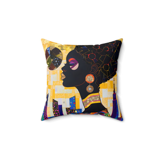 Spun Polyester Square Pillow - Black Girl Art - Velvet's View - Vibrant Visions Collection