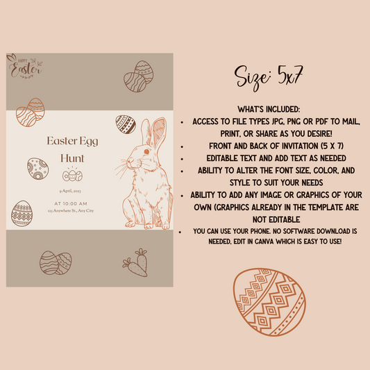 Easter Egg Hunt Invitation, Bunny Invitation, Easter Invitation, Easter Egg Editable Template - Printable - #2012