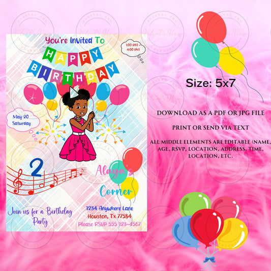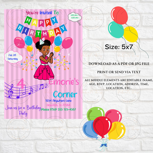 Printable Editable Girl Invite Template | Music Birthday Party | Gracie'S Corner Birthday | Gracies Corner Party Invitation -#2011