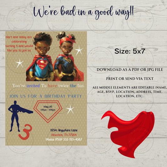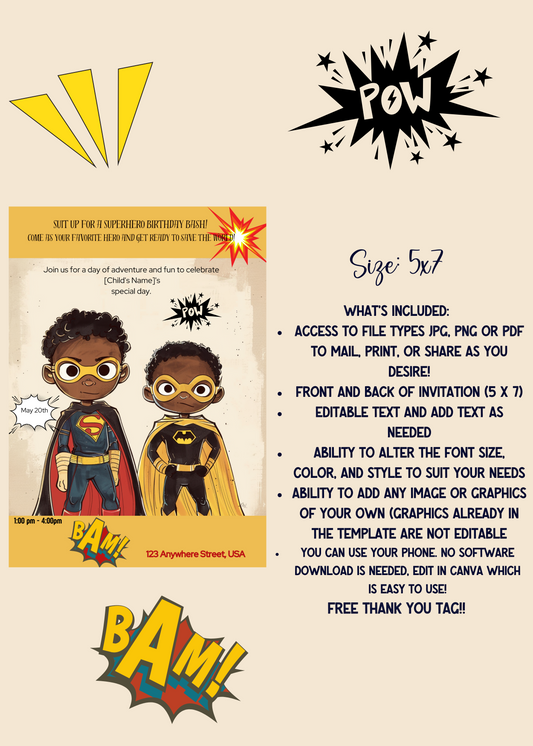 Printable Editable Invite Template | Music Birthday Party |Tiny Heroes: Customizable Super Birthday Invitation|Party Invitation #2012