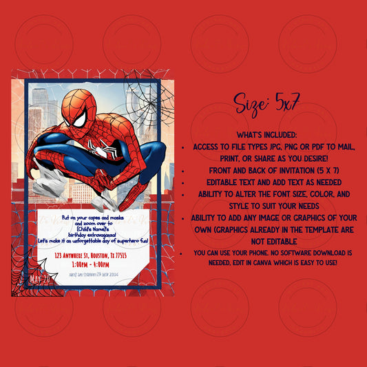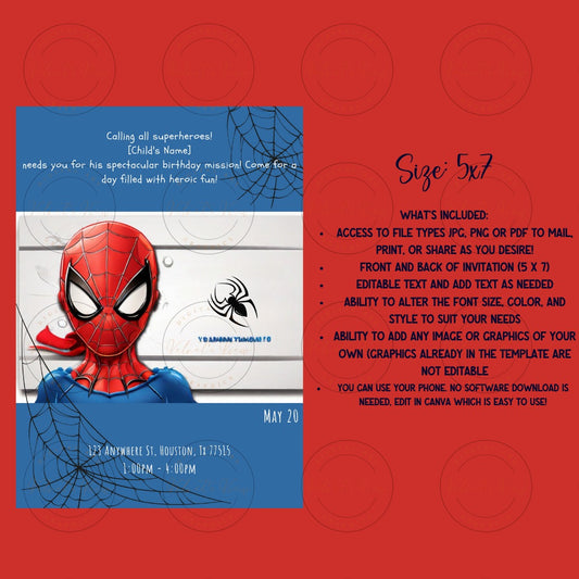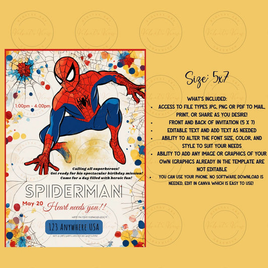Printable Editable Invite Template |Spidey Birthday Party |Tiny Heroes: Customizable Super Birthday Invitation|Party Invitation #2012