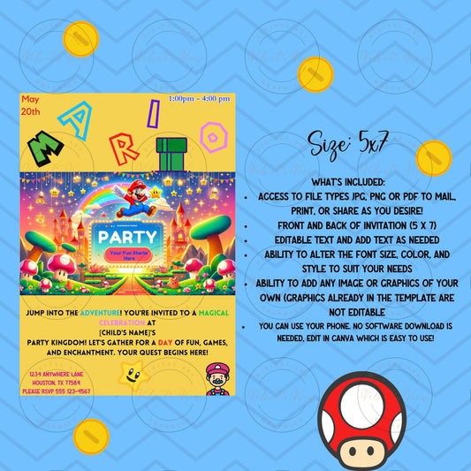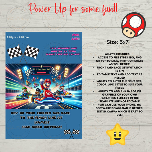 Printable Editable Invite Template | Music Birthday Party | Super Gaming Bash: Level Up Birthday Party Invitation #2011