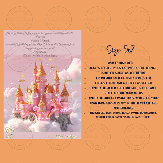 Printable Editable Girl Invite Template | Music Birthday Party | Princess's Castle Birthday #2011