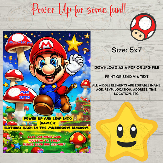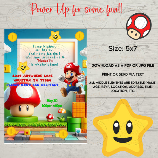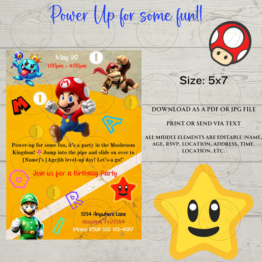 Printable Editable Invite Template | Music Birthday Party | Super Gaming Bash: Level Up Birthday Party Invitation #2012