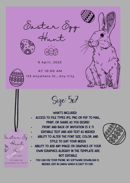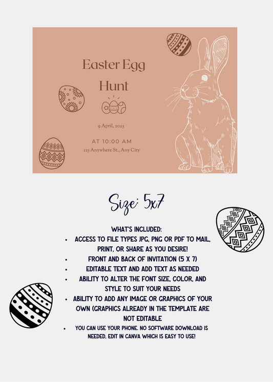 Easter Egg Hunt Invitation, Bunny Invitation, Easter Invitation, Easter Egg Editable Template - Printable - #2011