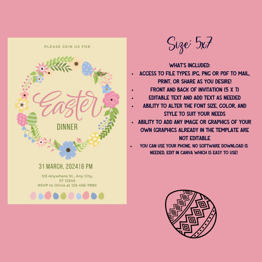 Easter Dinner Invitation, Easter Invitation, Easter Celebratrion Editable Template - Printable - #2011