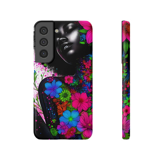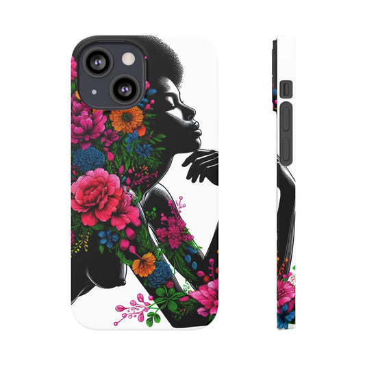 Slim Phone Cases - Black Girl Art - Velvet's View - Floral Fusion - The Essence of Nature and Beauty