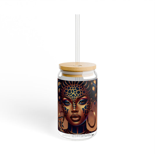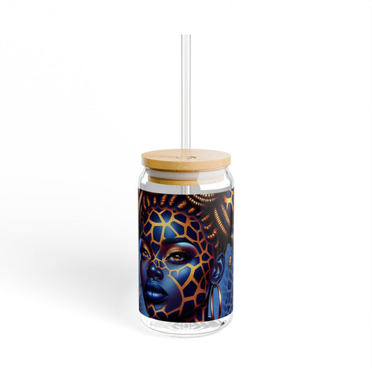 Sipper Glass - Black Girl Art - Velvet's View - Regal Radiance Collection - 16oz