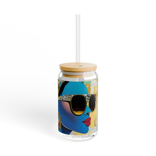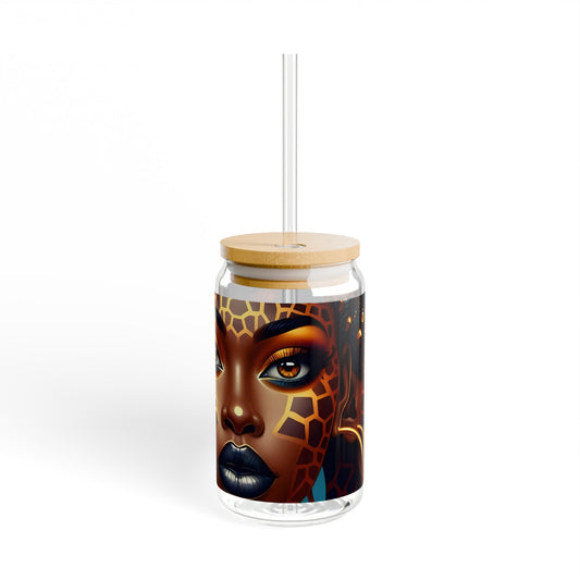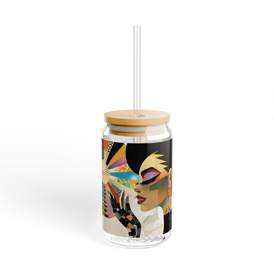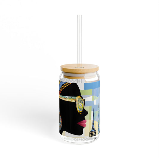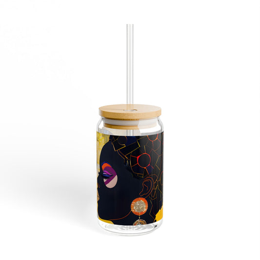 Sipper Glass - Black Girl Art - Velvet's View - Vibrant Visions - The Bohemian Collection - 16oz
