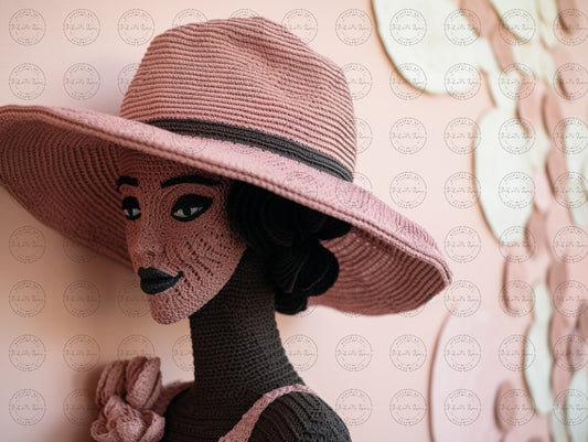 Digital Art - Threads of Elegance: Crocheted Woman in the Pink and Bronze #2016