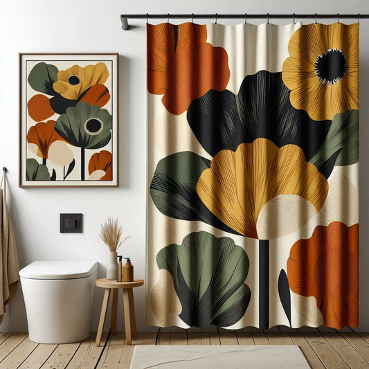 Retro Floral Bathroom Decor Set | Boho Abstract Shower Curtain, Towels & Wall Art | Mid Century Modern Bath Mat | Earth Tone Bathroom Collection - Bath Towel 30"x56"