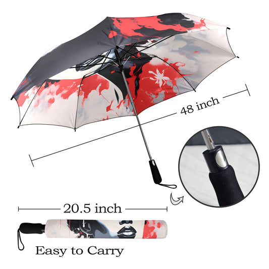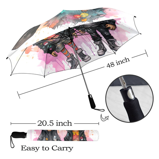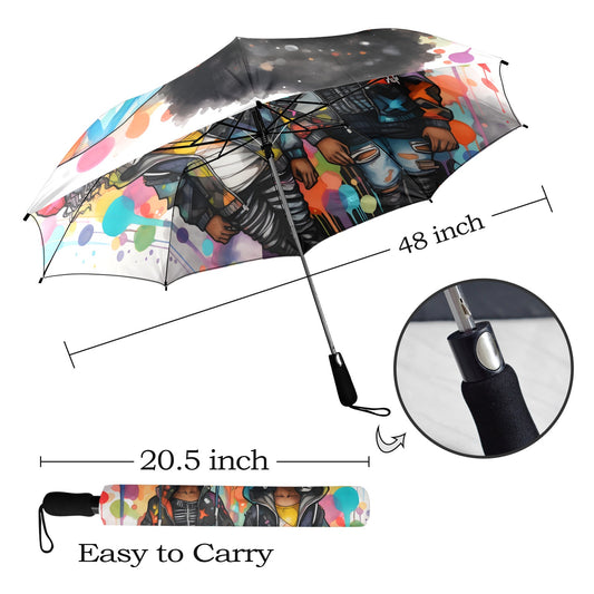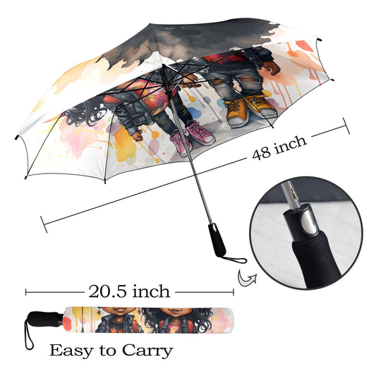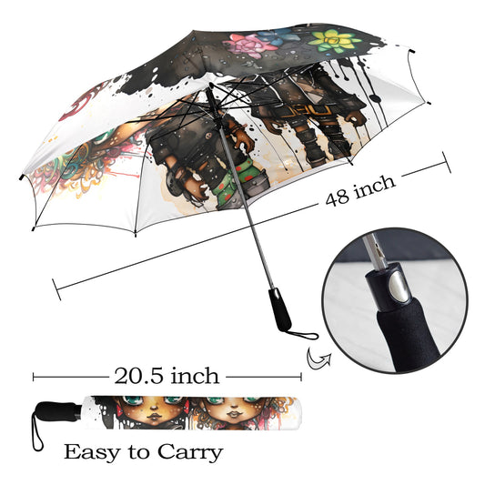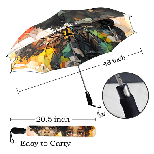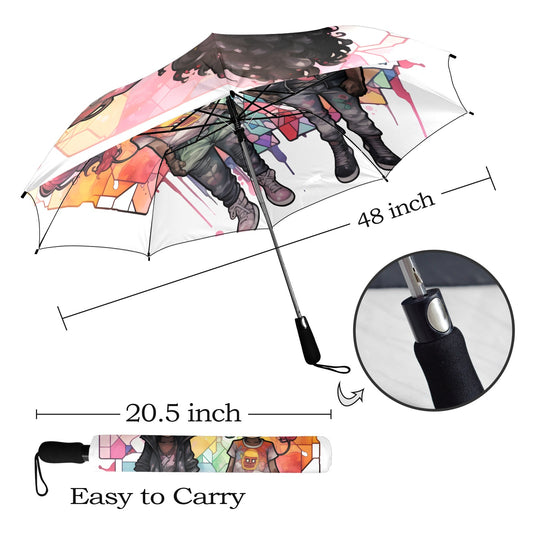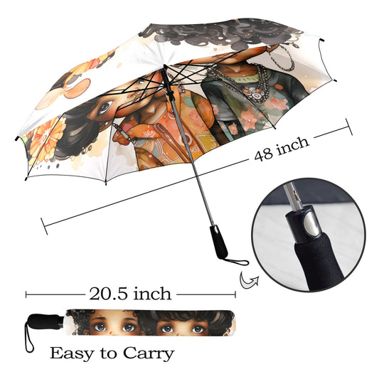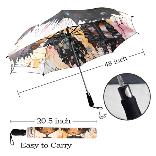 Semi-Automatic Foldable Umbrella - Black Girl Art - Velvet's View - Whimsical Kool Kids Collection - (Model U12)