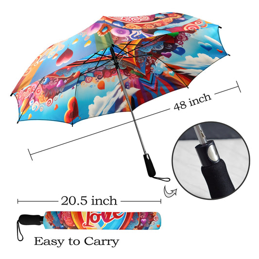Radiant Hearts Automatic Folding Umbrella with Case (Medium) - #2031