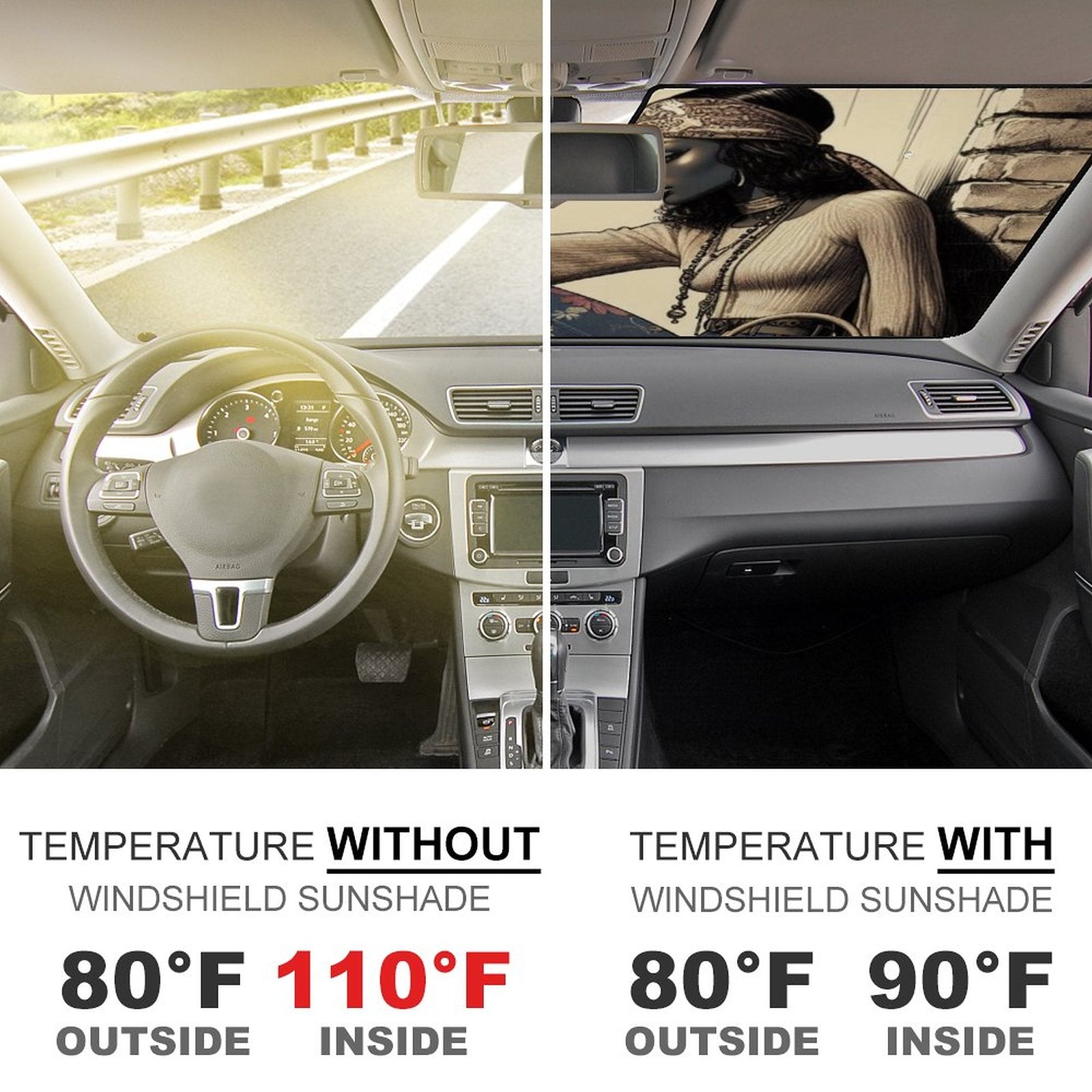 - High quality: Adopting oxford cloth, foam and quality Aluminum foil, the Windshield Sun Shade is a perfect combination of practicality and decoration in your car.